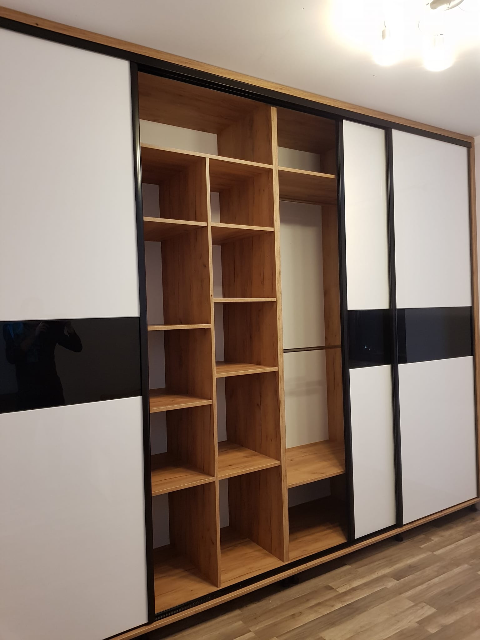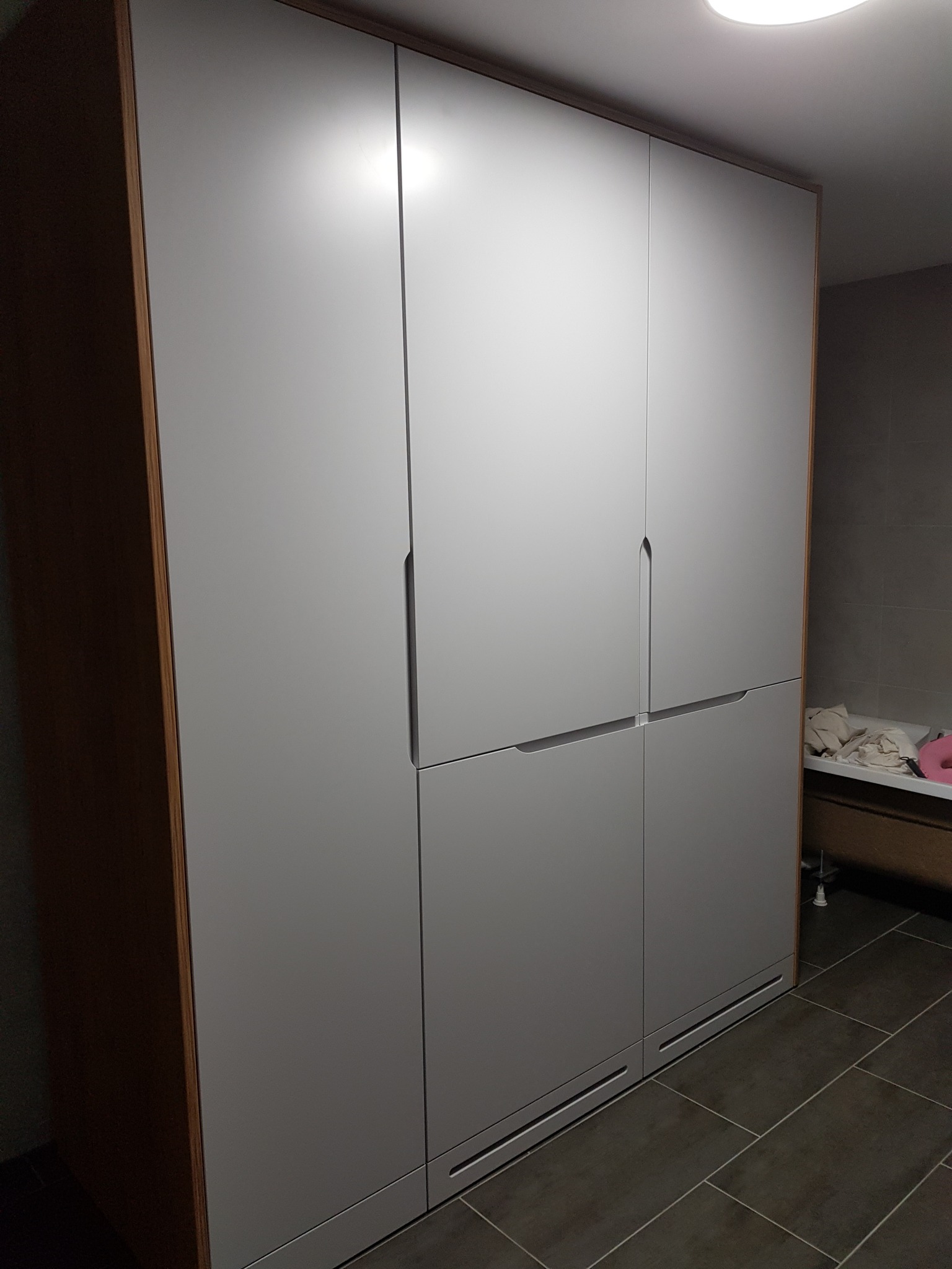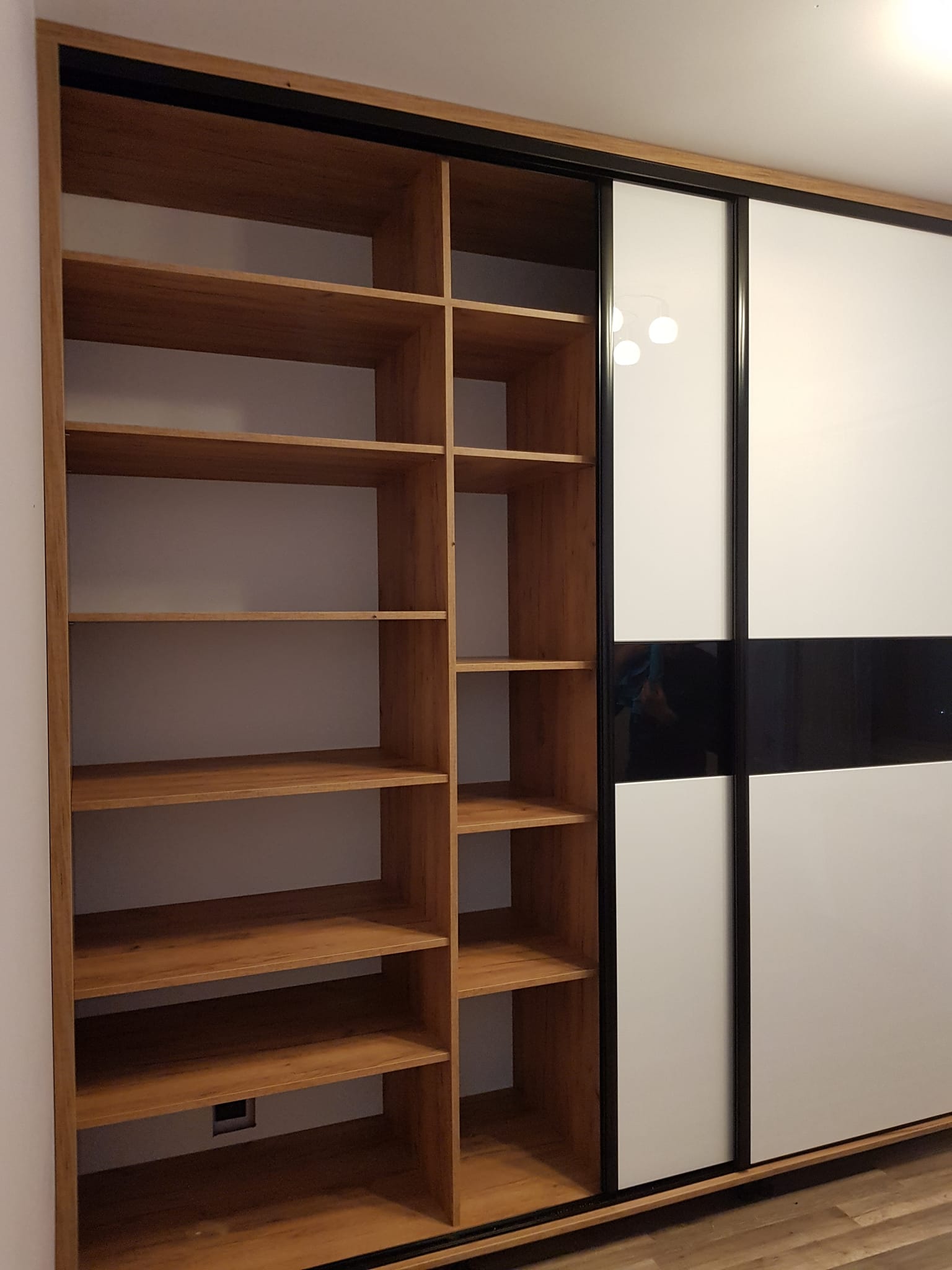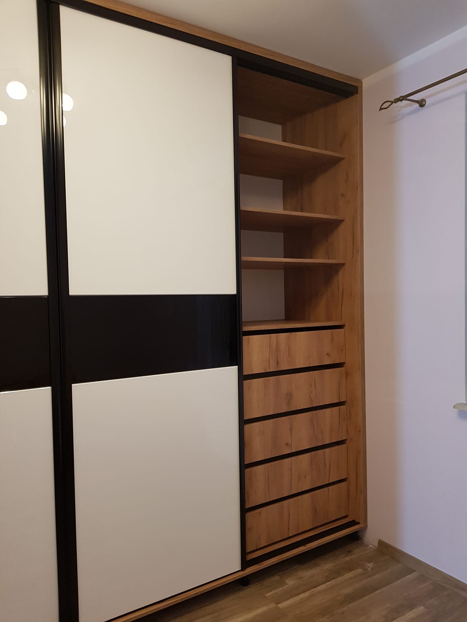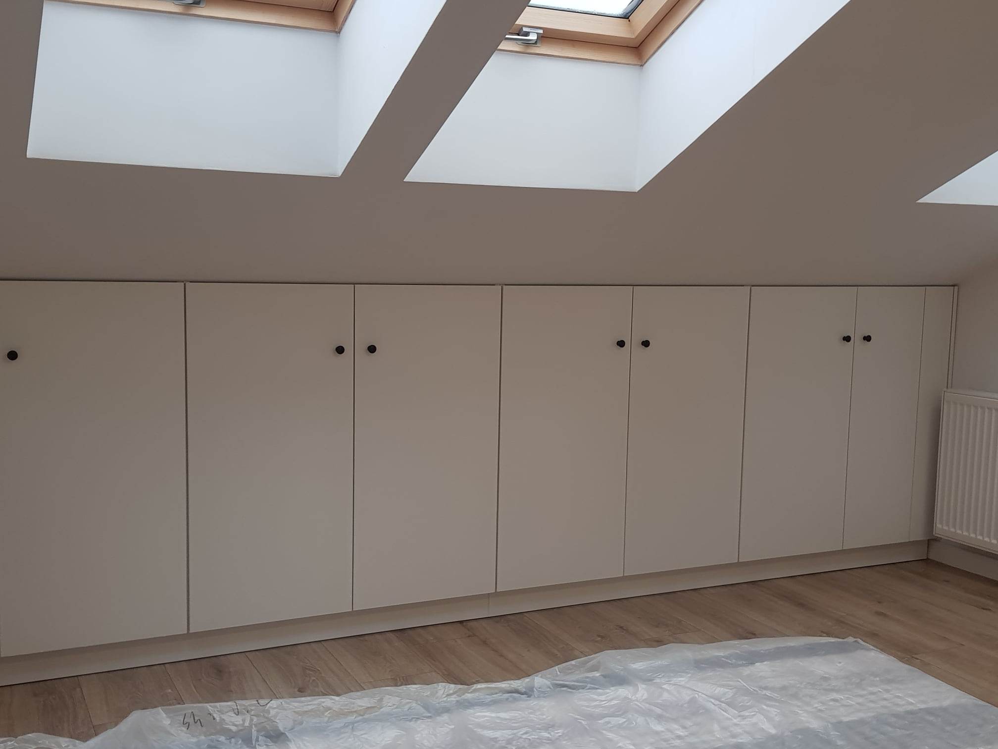 Der Schlafzimmerschrank reicht vom Boden bis zur Decke und hat eine Spiegelfront. Er vergrößerte den Raum optisch, machte ihn heller und wir gewannen viel Stauraum. Sehr zu empfehlen!